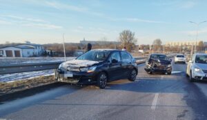 Na drodze prowadzącej od ronda Jerzego Parana doszło do kolizji Toyoty i Citroena. Nikt nie odniósł poważnych obrażeń. Toyota została uszkodzona na tyle, że konieczna okazała się interwencja pomocy drogowej.