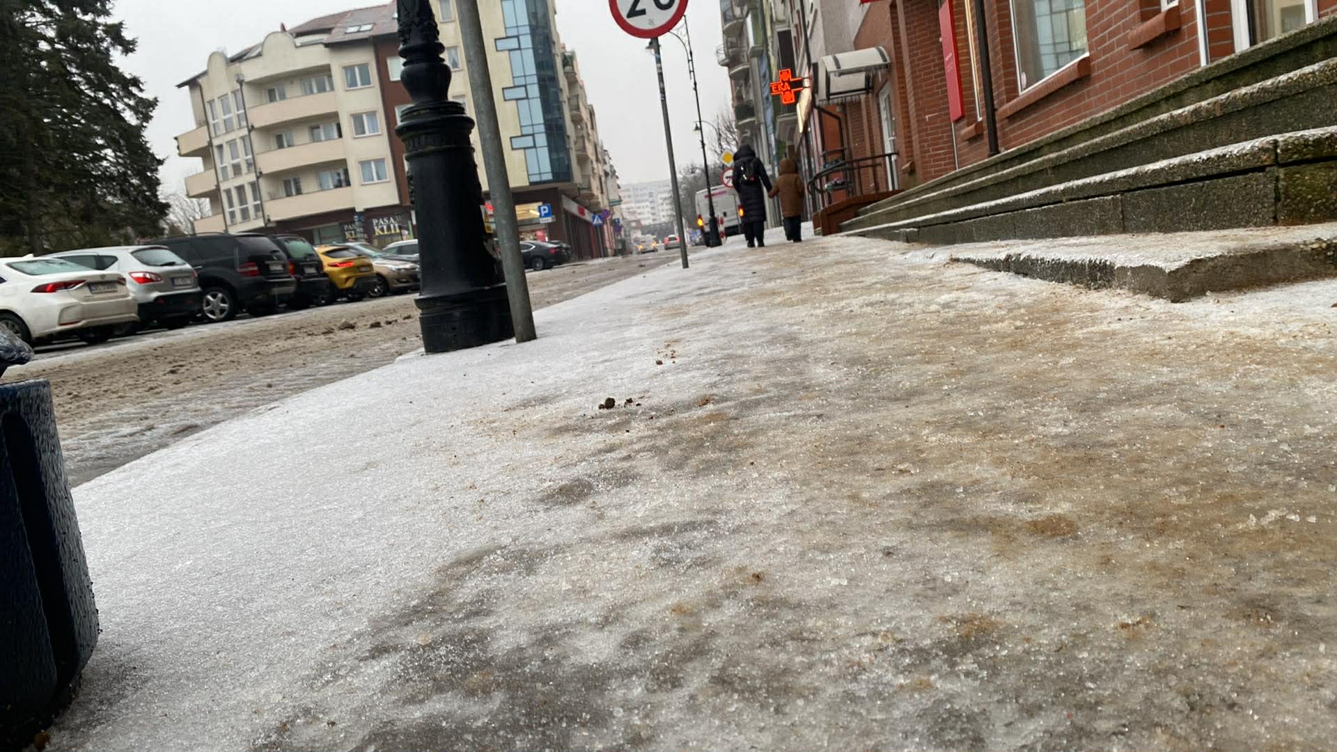 16 pojazdów Zieleni Miejskiej walczy od rana z gołoledzią i marznącym deszczem na drogach i chodnikach w Kołobrzegu.