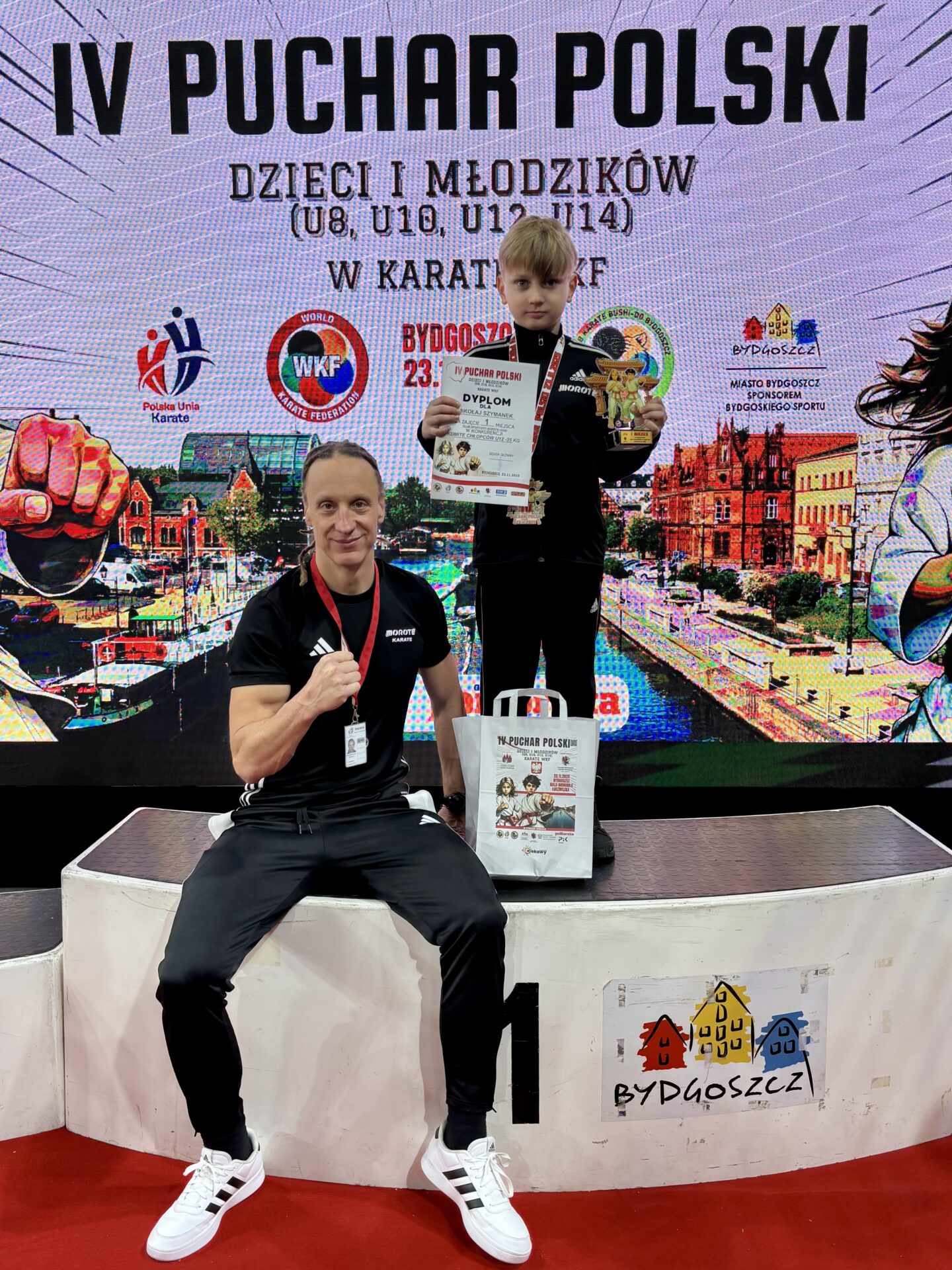 Złoty medal w kategorii kumite chłopców U12 -35 kg wywalczył Mikołaj Szymanek. Zawodnik potwierdził swoją dominację w tej kategorii, zdobywając trzeci z rzędu tytuł mistrza Pucharu Polski.